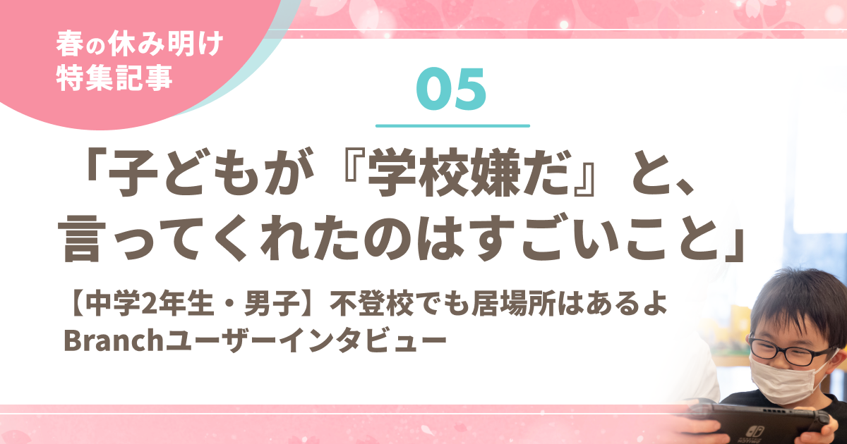 次へ:「心が外へ向いているかどうかの方が大事」【中学3年生・男子】不登校でも居場所はあるよ – Branchユーザーインタビュー