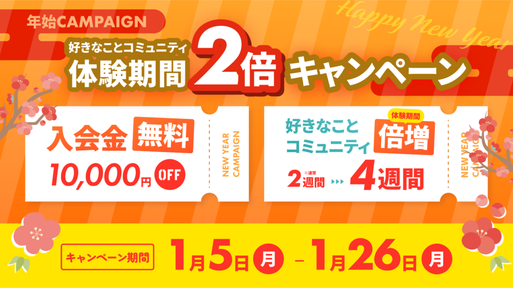 年始【入会金+コミュニティ体験2倍】キャンペーン!|20名限定