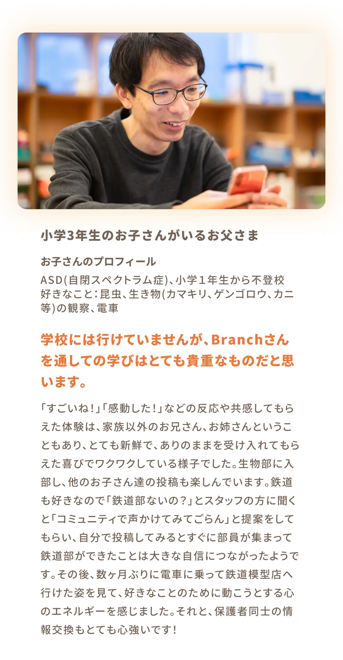 ASD(自閉スペクトラム症)やADHD(注意欠陥・多動性障害)やLD(学習障害)などの発達障害や、不登校のお子さんとご家族一人ひとりと寄り添い、孤独をなくす居場所を提供しています。