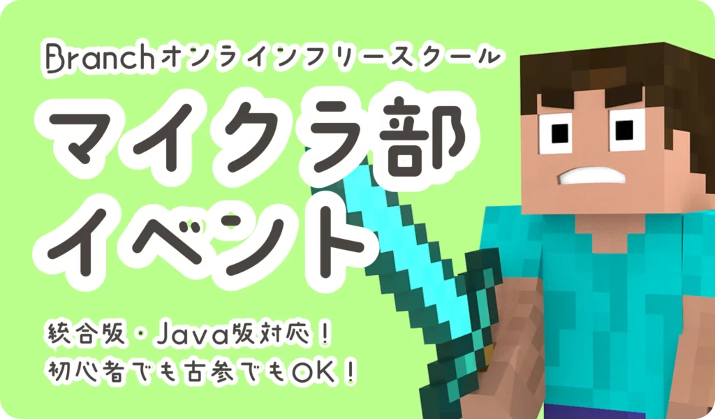 Branchオンラインコミュニティ内のマイクラ部では定期的に統合版、Java版に分けてイベントを行っています。