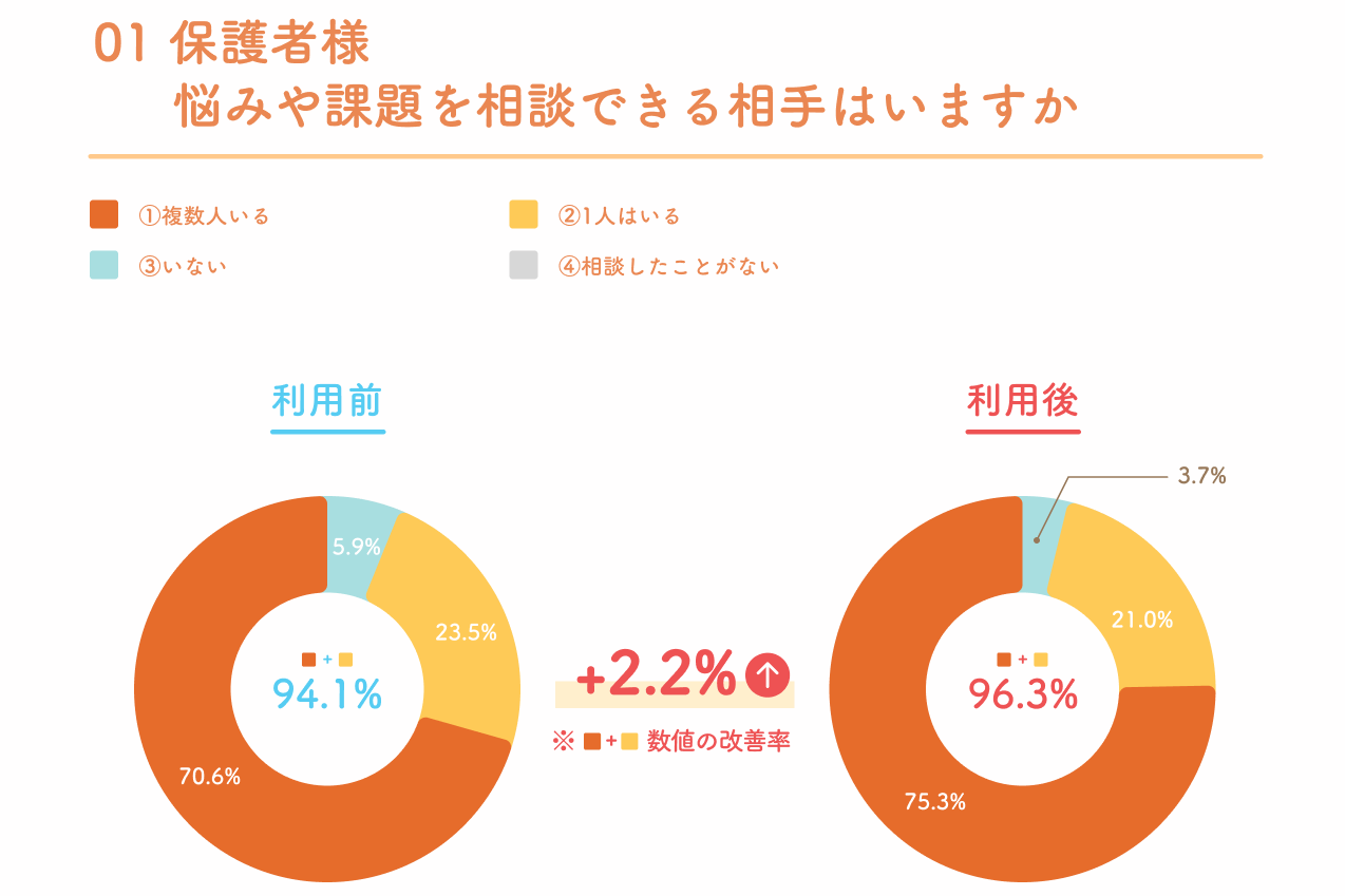 保護者の方が落ち着くことで、お子さんへの対応も穏やかになり、ご家庭全体の安心につながります。