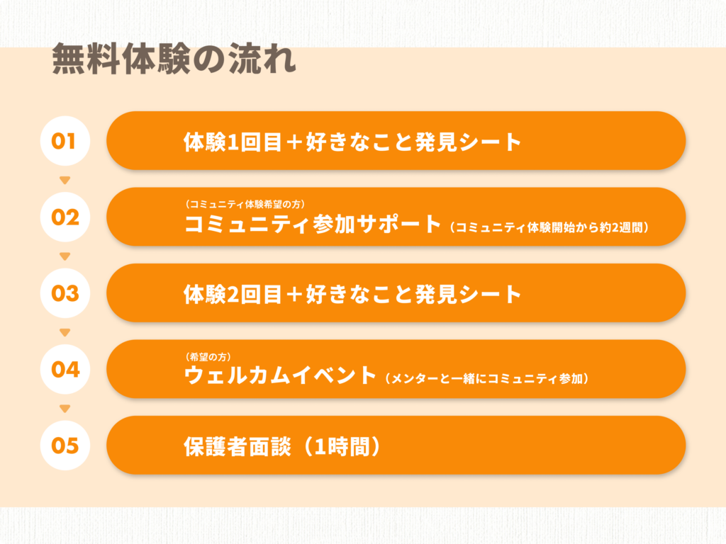 お子さんの好きなことや興味があることについて、メンターと1対1で一緒に遊んだり、お話しをする「好きなことプログラム」と、コミュケーションツールDiscordを使用した子どもたちと保護者の交流の場「好きなことコミュニティ」に参加できます。