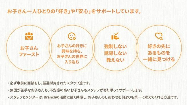 Branchでは、「お子さんの話を徹底的に聴く」ことがすべての基本です。大人が一方的に教えたり、急かしたり、都合を押しつけることはありません。