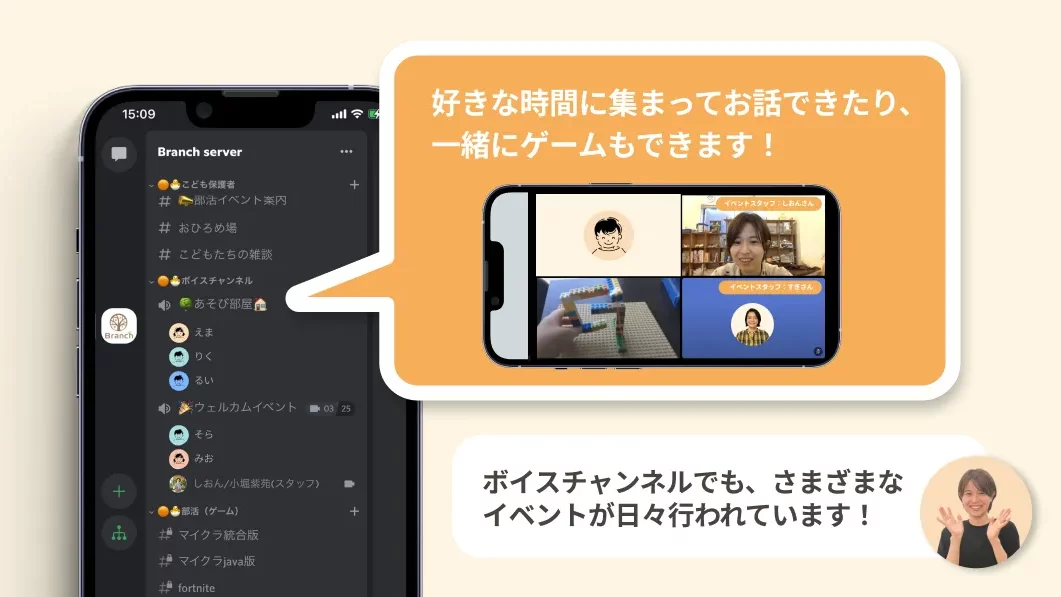 月30本以上にわたるイベントに加えて、子どもたちが自由に遊び相手を募集し、通話しながら遊ぶことができます。
