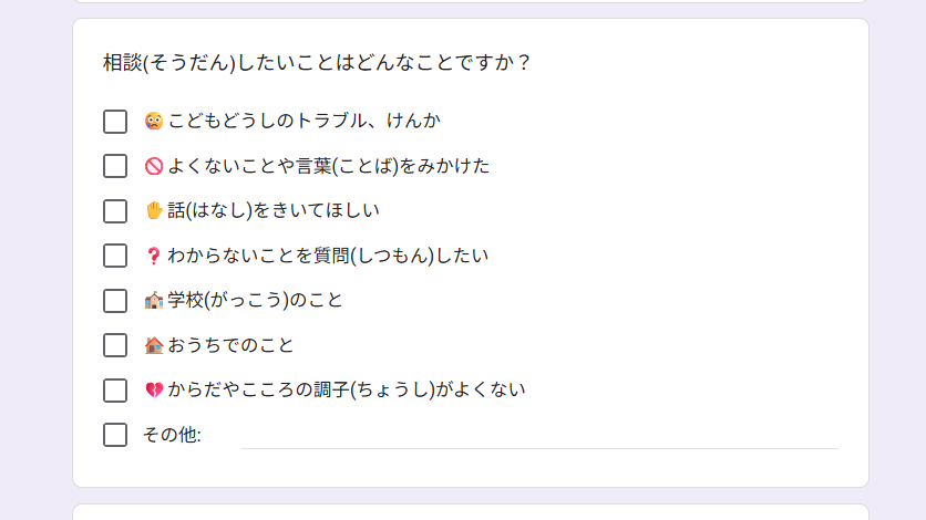 コミュニティ内で困ったことや、ご家庭・学校での悩みなど、どんな小さなことでもスタッフに相談できる『SOSフォーム』を設置しています。